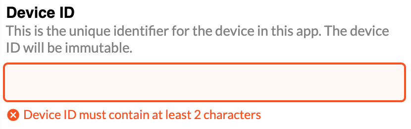 Device ID can only exist of lowercase alphanumeric characters, nonconsecutive - and _ and it cannot start or end with a - or a _