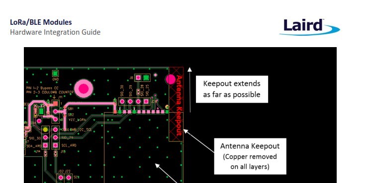 another thing I noticed is, that in the hardware integration guide they mention (warned) that you cannot have copper around the ufl connector.