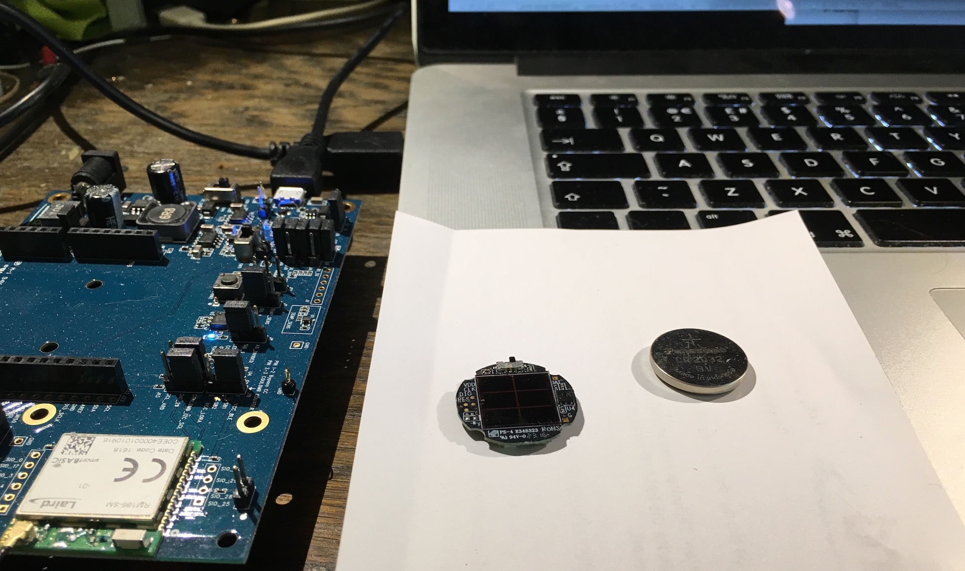 The CR2032 battery is for scale only, these Cypress energy harvesting beacons contain no battery, they’re purely solar powered but still work indoors, for example near a lamp or window.