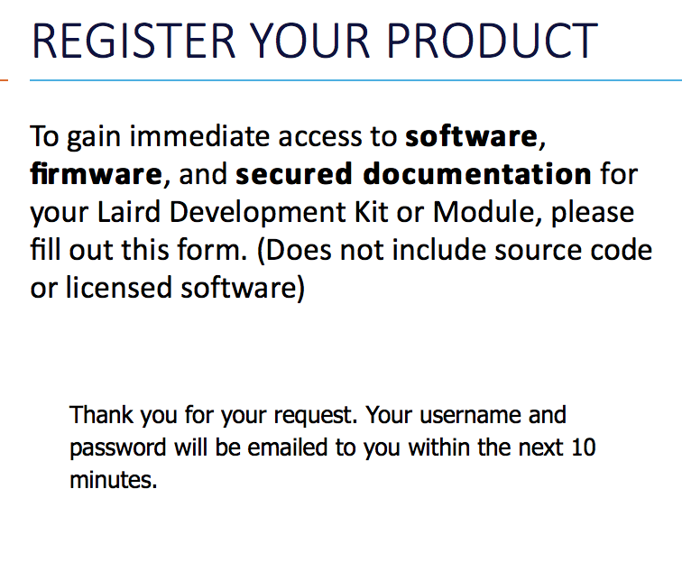 Have you tried to register at http://www.lairdtech.com/support/product-support-center/embedded-wireless/embedded-wireless-software/register-your