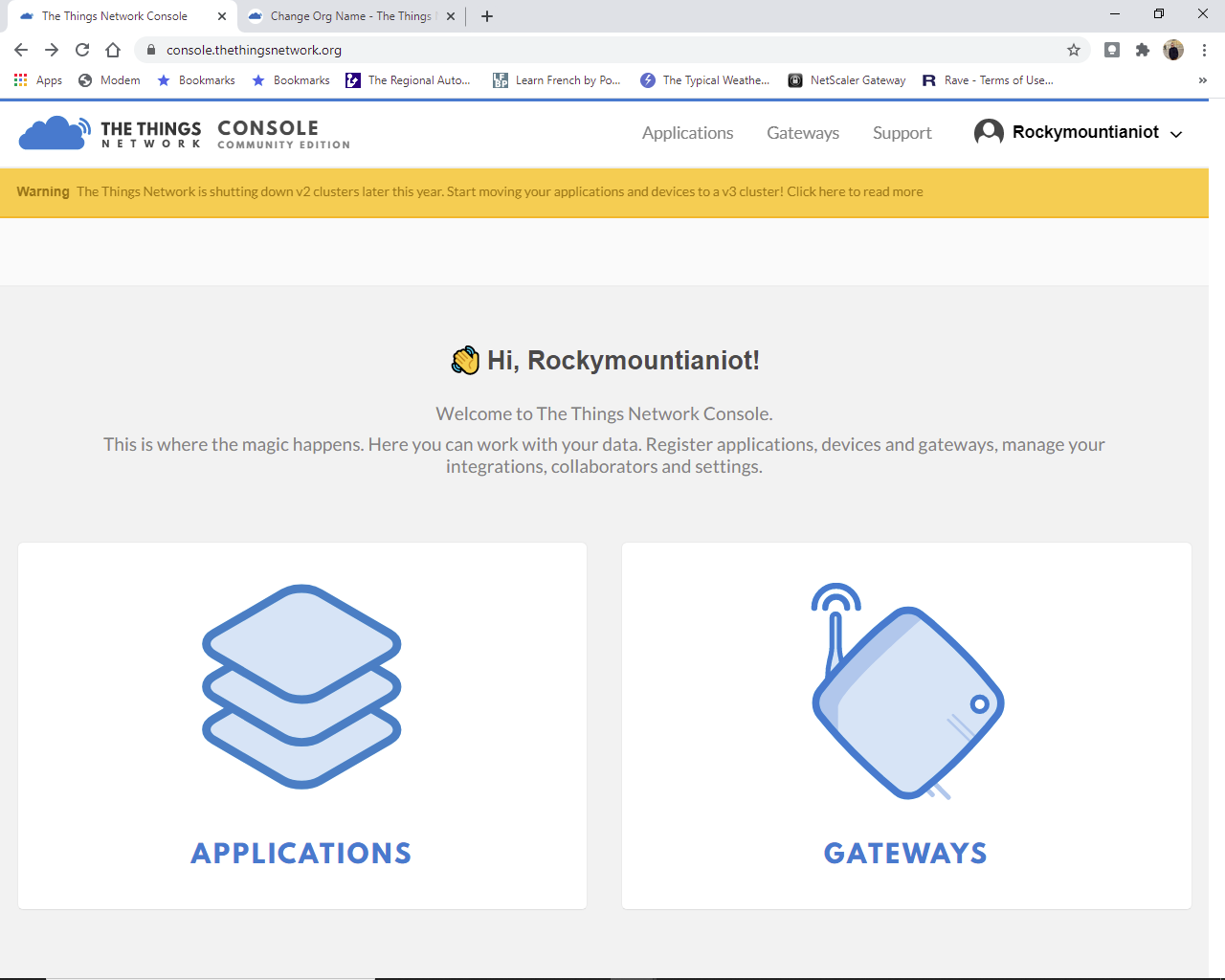 Create a new account with the right username (will require a separate e-mail address), log into this account and make the new account collaborator for everything you want to transfer (gateway and apps).