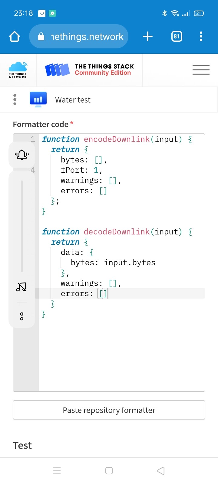 Look for your device’s vendor and the exact model you are using and you will find the encode and decode JavaScript functions. (I found them for the ones I’m using). Replace the function you find with the current equivalent you have for both the Downlink and Uplink.