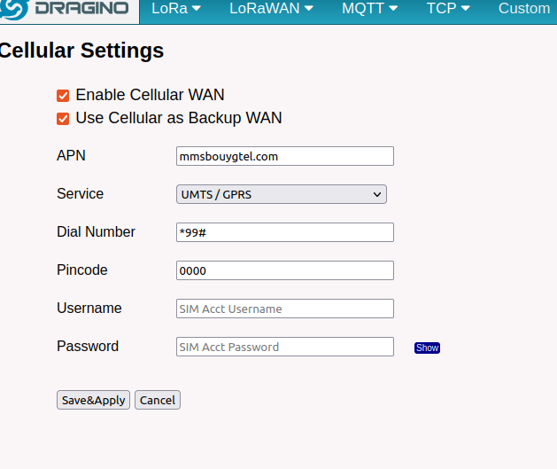 I have the dragino LPS8-N gateway with the lgw-5.4.1668567157 version. I associated it with the mini pcie EG25 to connect to the internet via cellular network. In the picture you will see my configuration. When I save the settings the gateway detects the SIM card well but the internet connection does not pass. Do you have a solution to this?