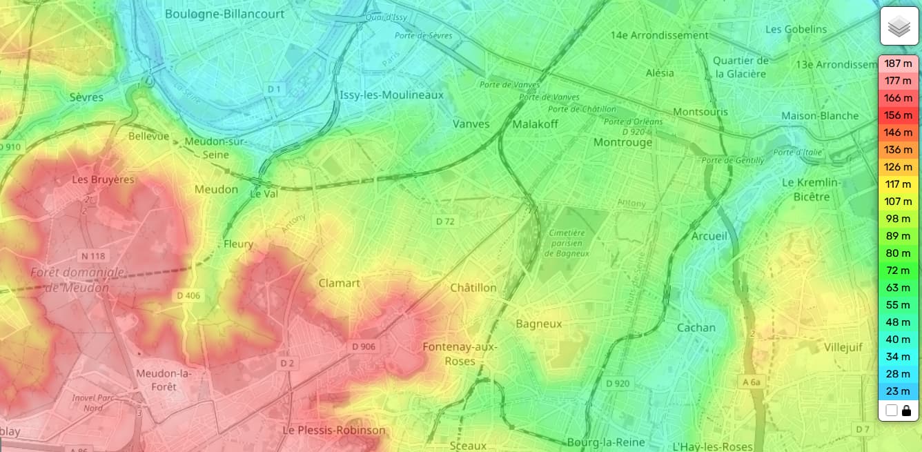 The ‘idealised’ maps and potential coverage is often discussed on the forum (search top right) and often leads to confusion and high expectations. Everything is dependent on locations (yours and the gw’s and the intervening built environment and topology. How close are you to the target GW’s? What is between you (do you have clean LOS)? What is respective elevation. A crude look suggests 3 or 4 potential GW’s N/NE of where you might be at around 1-5km distance, however can see e.g. Montparnasse/Brest Rail line between which if on an embankment vs a deep cut and if GW’s and device at low position wrt local ground may mean there is RF shadowing. You need to be specific and look at how topology may impact. These pic may help you get to grips: