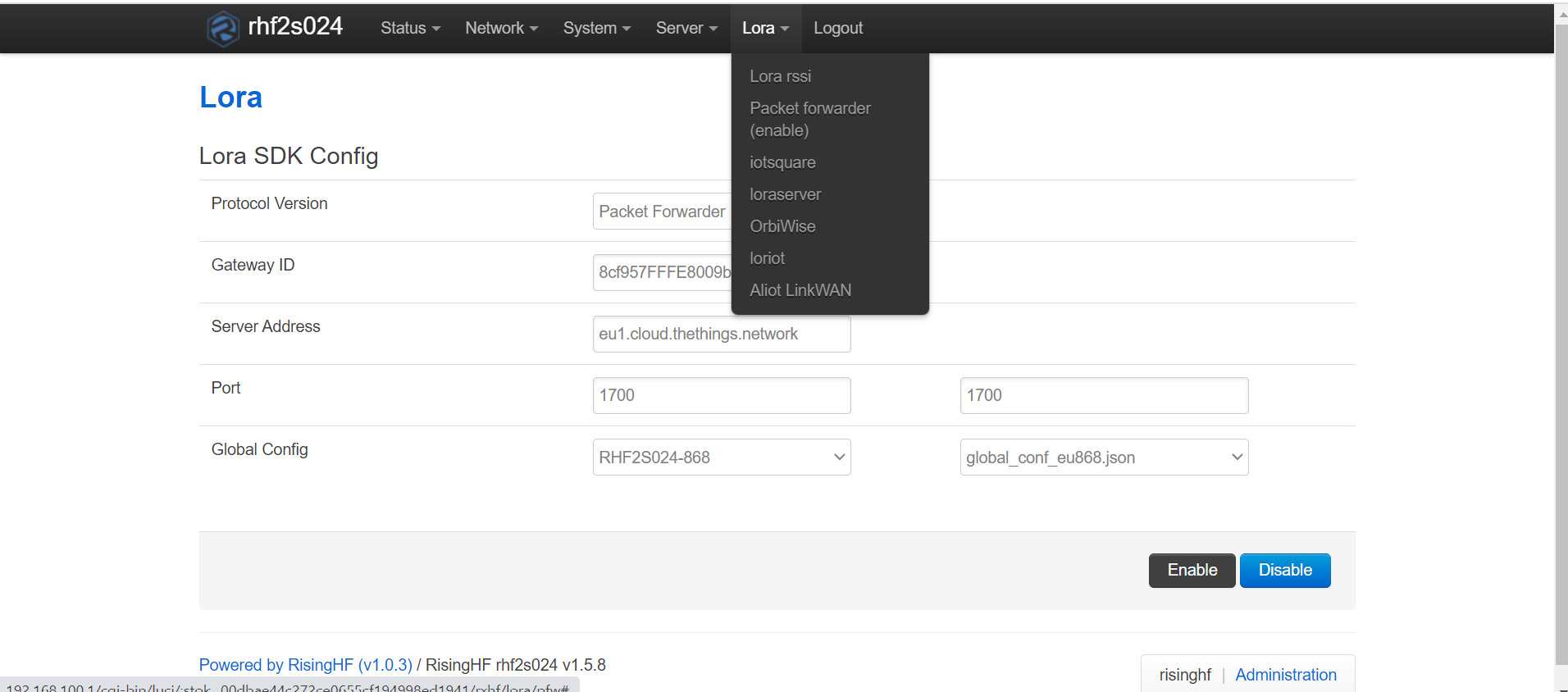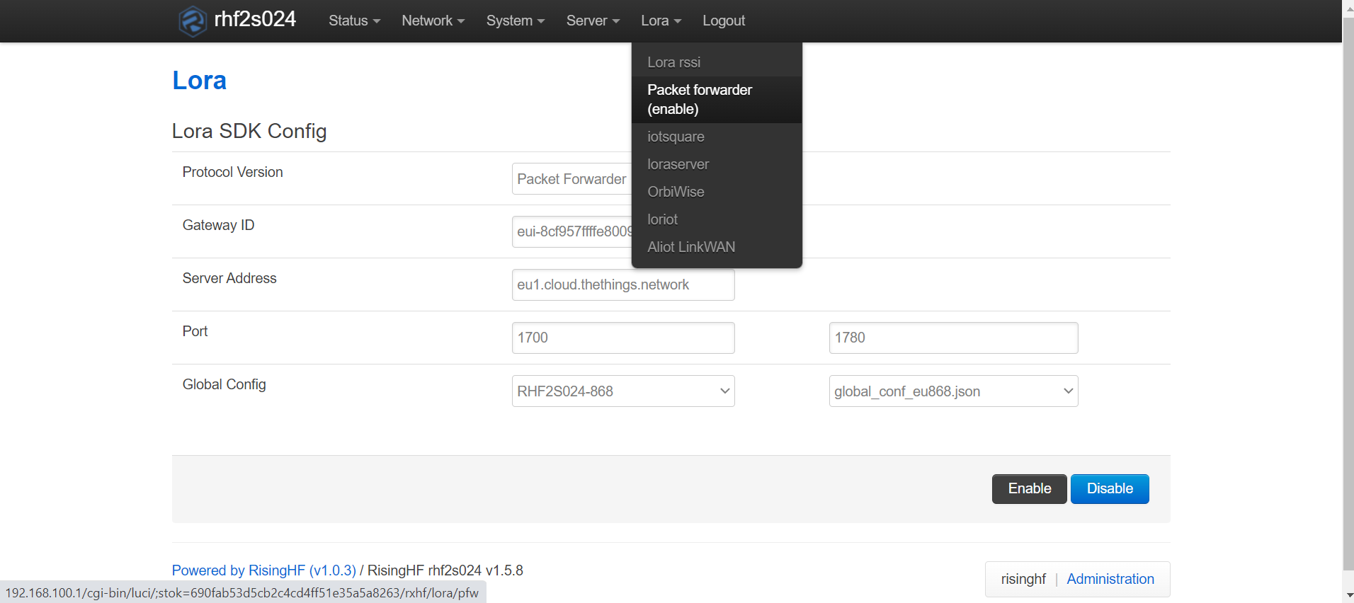 Is that the “Packet Forwarder (enable)” page?