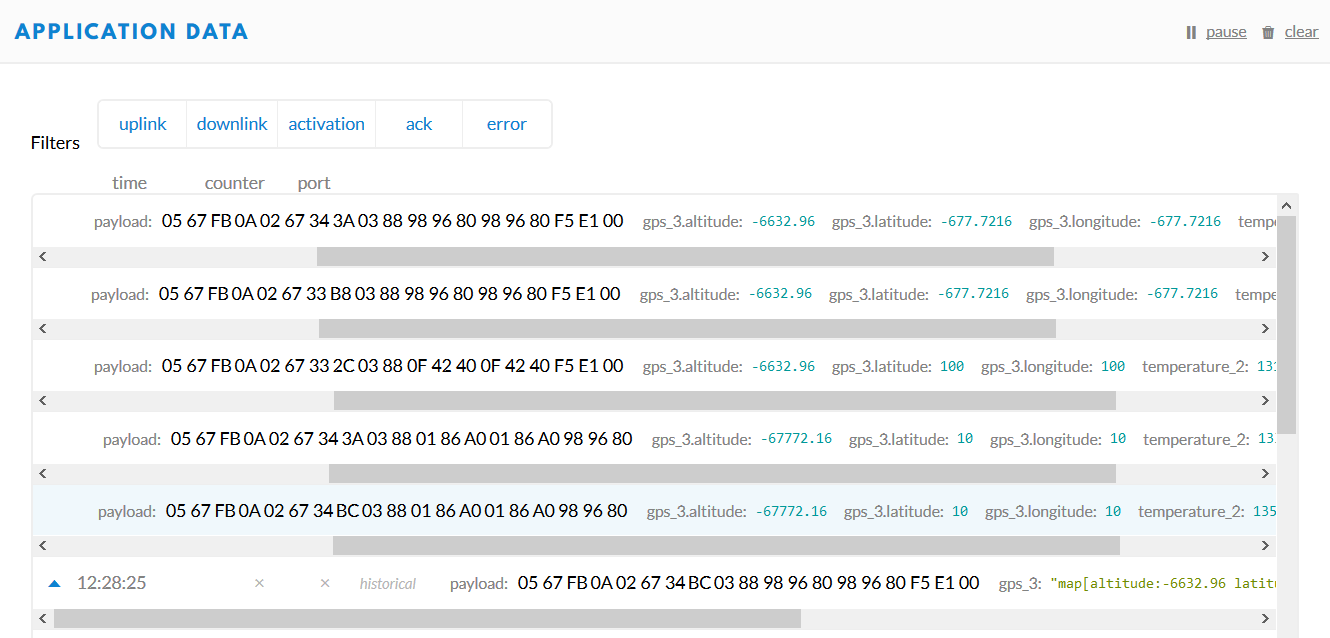 So I am using Dragino Lora GPS Shield to get the gps readings. The tiny gps example works just fine but for some reason in a different code , I am unable to get the correct readings. I have attached the code and the thethingsnetwork payload image.