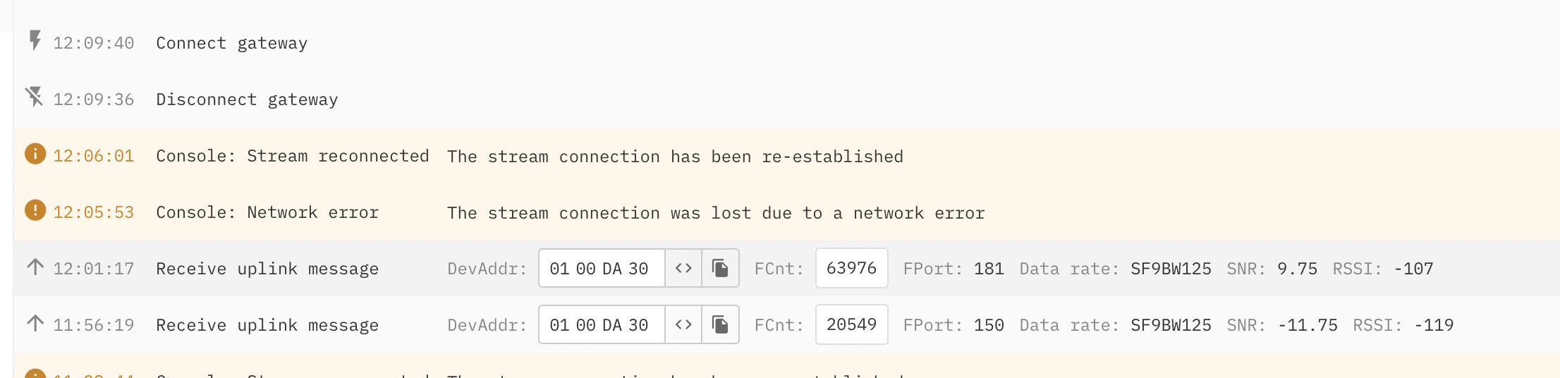 It only showed the receipt of a corrupted packet with bad CRC (or as likely an imagined non-packet), which has nothing to do with the interaction of the gateway and network server.