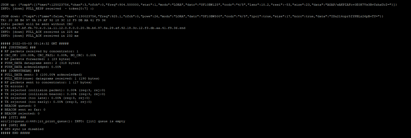 In addition,the gateway can receive the uplink successfuly, which means the RF module works.