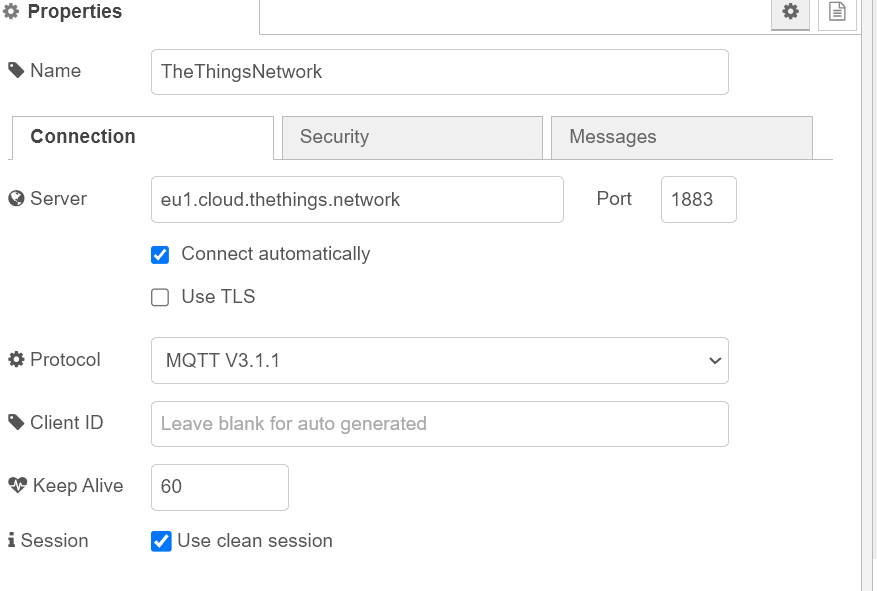 Well, the problem is partially solved…the NNSXS part was missing, so Node-red is now connecting fine, brings in the payload, however, I still get “Fail to connect to MQQT”.