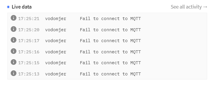 Hi, I will reread it…I understood I needed to copy the API key somewhere and not MQTT key. I copied MQTT key in config of Node-Red and that’s how it’s connected. Last night was the first time I saw “fail to connect to mqtt” error.