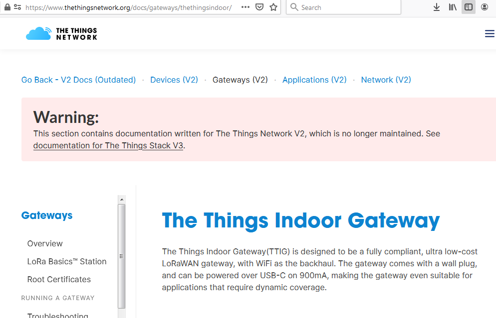 Accordingly a simple search for “The Things Indoor Gateway V3” should take you to a results page where the 1st item (and 1st sub item) relate to migrating TTIG V2 - V3, as the initially most popular need. The 2nd major search result shows a link to the TTI Docs, covering GW’s as above.