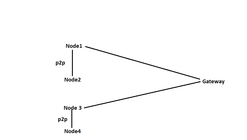 If this scenario is not possible, what would be my options if I deploy another node on each building’s roof top to talk with gateway [assuming line of sight] and have the bottom nodes communicate with the top nodes [instead of communicating with gateway]. In this situation, distance between bottom node and top node will be 30 to 100 meters. Is it possible to do p2p between the nodes and have the top node also talk with gateway to rely data? This way bottom node need not talk with gateway directly. If p2p is not possible, what other technology or option can be explored for communication between the nodes?