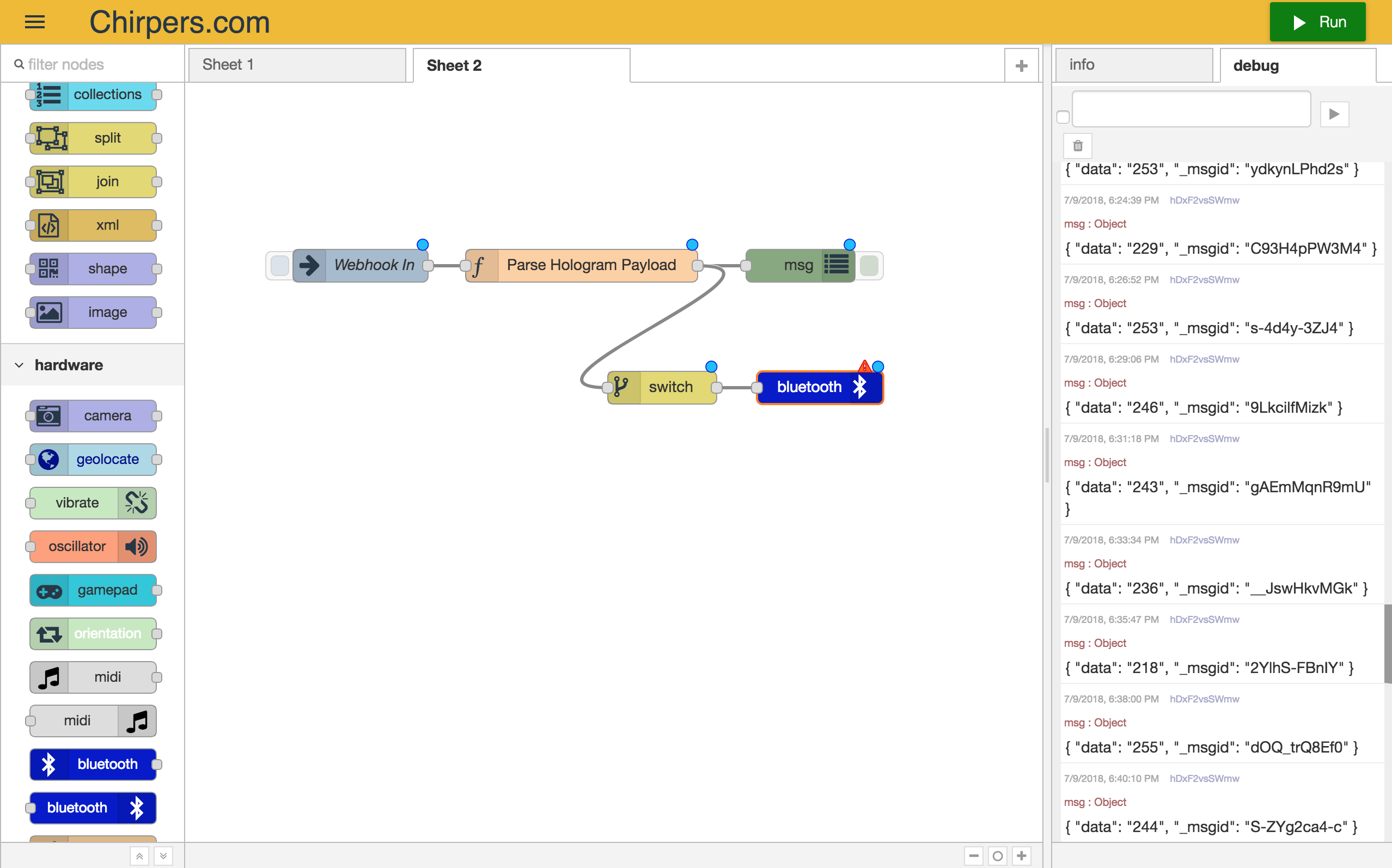 Chirpers.com is a Node-RED based IoT platform. It runs the entire designer in the browser session.