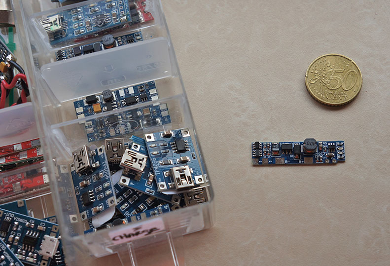 complete dc/dc 3.7 v in / 5 v out rechargable power unit with protection. just connect to an adapter overnight… led switches from red to green when full