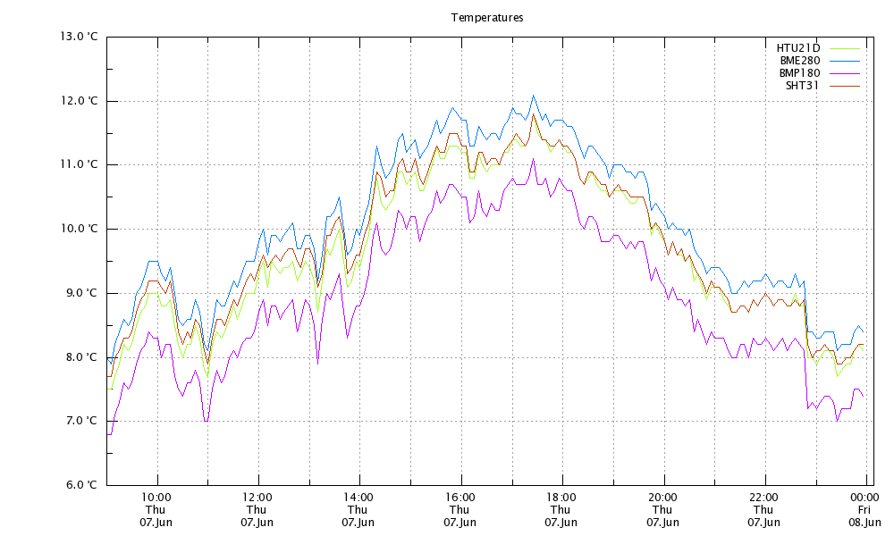 Here you see, that the difference between the two Bosch Sensors is around 1° I think they are designed for mobile phones, where you cannot expect exact weather measurements.