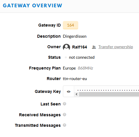 The TTIG is gone again (6 hours ago). It showed a solid green LED and the TTN console said “not connected”.