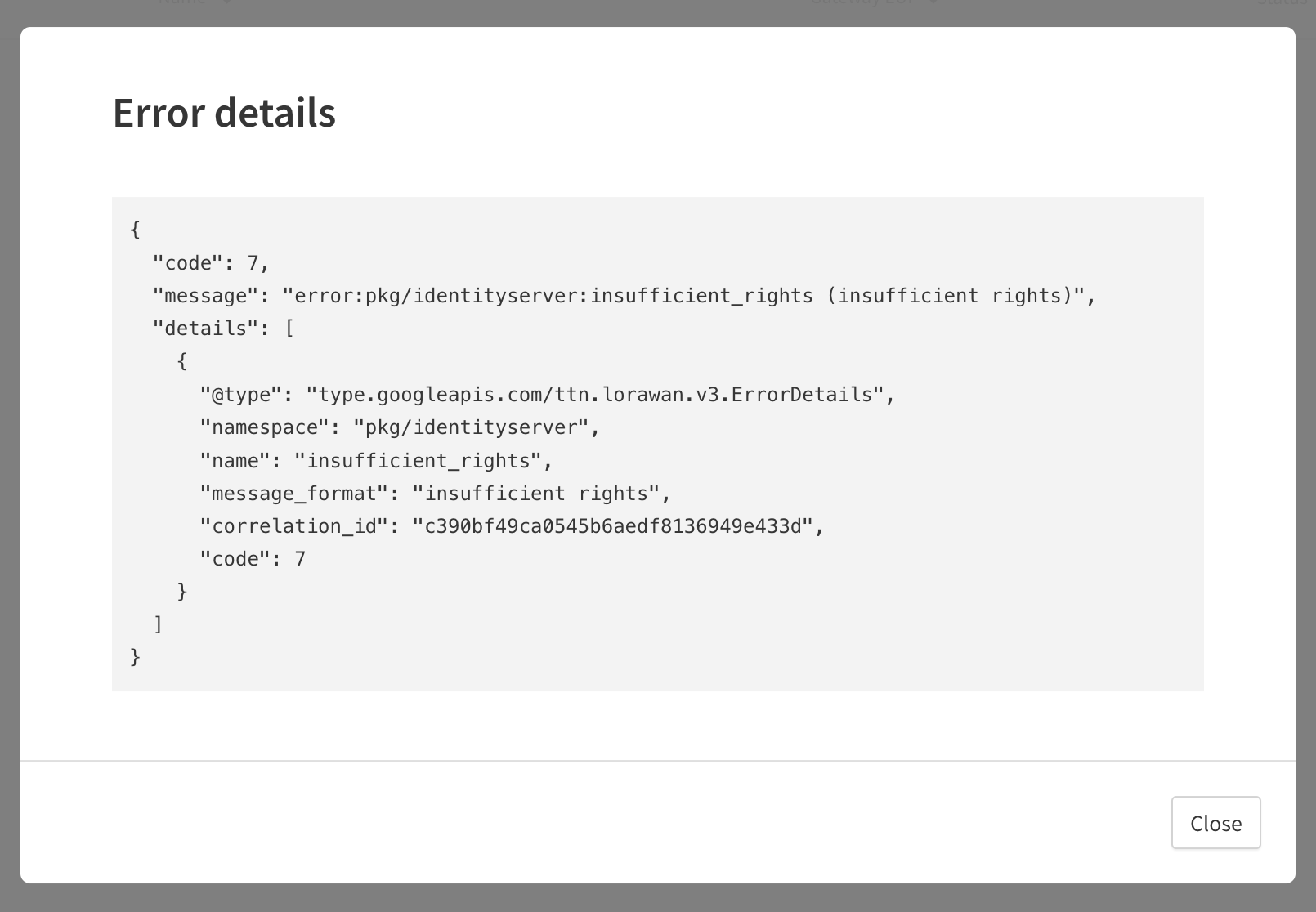So I created a second ttn account and added it to my organization, which has rights for all my gateways. I logged into the new account and was able to view the gateway list. I was looking at the permissions on a few of the gateways and then when I went back to the list view I got the error on my new account.