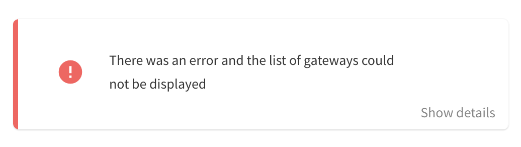 I have admin permissions, and I have checked that these permissions have not changed. I could see our Gateways at some point 10 days ago, and late last week I got the same issue with the same error message as reported by kianpengyong.