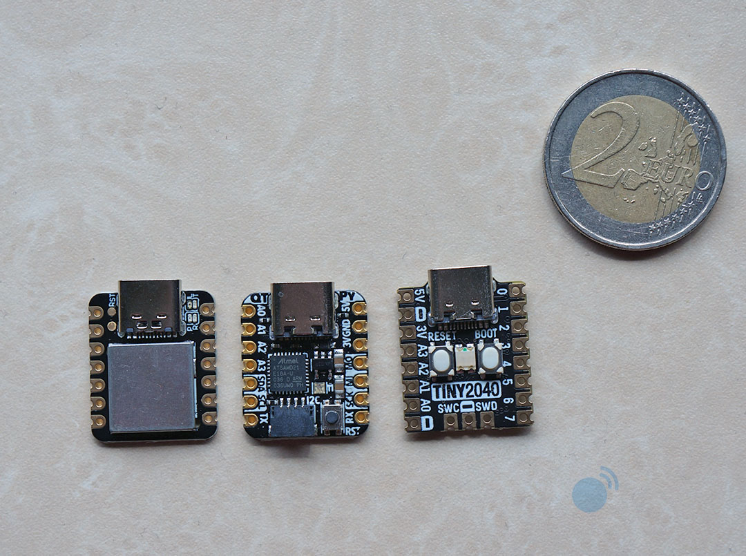 left to right : SEEED XIAO - ADAFRUIT QT-PY - PIMORONI TINY 2040